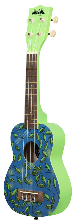 Em uma noite quente de verão, vaga-lumes saem para brincar, iluminando o céu e fornecendo o tema para nosso Night Light Ukadelic. Para não ficar para trás nesta noite de verão, um grilo senta-se em uma folha e oferece sua própria canção distinta, enquanto uma libélula faz seu caminho para a água. Esta arte original foi criada por nossos artistas e completamos com a cor "verde gafanhoto" na parte traseira e nas laterais.